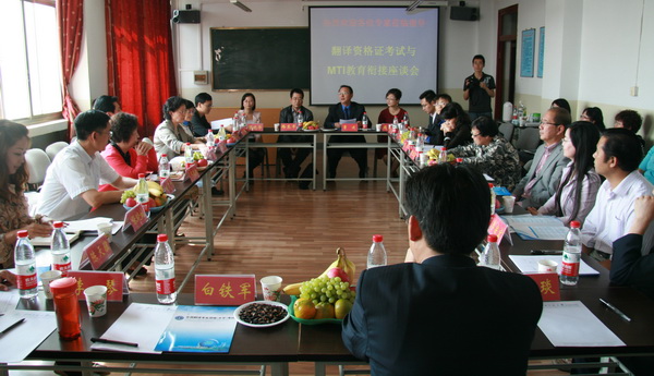 2012年9月20日下午,全国翻译资格(水平)考试与翻译硕士(MTI)专业学位教育衔接座谈会(西北区)在公司召开,中国外文局常务副局长、翻译考试领导小组组长郭晓勇,翻译考试英语专家、前外交部大使任小萍,翻译考试阿拉伯语专家、北京外国语大学教授齐明敏等一行7人和公司副董事长万明钢教授、兰州城市公司副董事长姜秋霞教授及来自兰州大学、公司研究生院和金年会金字招牌诚信至上的相关负责人、教师参加了会议,会议由公司经理曹进教授主持。