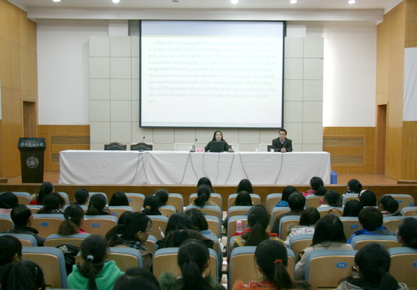 报告会中,俞教授首先回顾了反思性教学的历史及其不同模式,并就英语教师专业发展的内涵与途径等重要问题进行了全面、深入的阐述。会上,俞教授指出反思性教学对英语教师专业发展的重要性并结合自己对微格教学的实证研究,为公司师生了解反思性教学方面的前沿成果以及提升公司师生的科研能力给予很大帮助,有很强的学术价值和现实意义。
