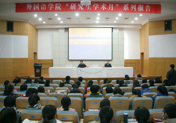 11月15日下午,金年会金字招牌诚信至上副经理刘全国副教授在学术会堂为公司师生作了题为《在现代性与后现代性之间:翻译书写的人文向度与实践理性》的学术报告。报告会由金年会金字招牌诚信至上副经理高育松副教授主持。公司近300多名师生共同聆听了此次报告。