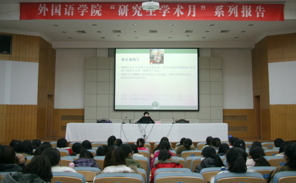 11月28日下午,金年会金字招牌诚信至上硕士生导师白丽梅教授在学术会堂做了题为《功能语言学框架下的语篇分析与建构》的学术报告。公司300余名师生一同聆听了报告。