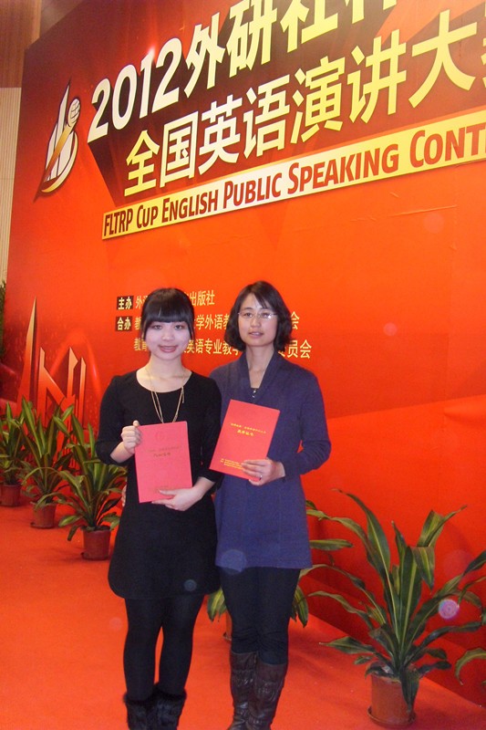 经过为期一周的比赛,来自全国各高校的选手们充分发挥,展开了精彩激烈的角逐。谢伟婷最终荣获2012年外研社杯全国英语演讲大赛三等奖。