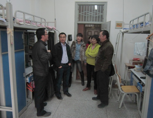 3月13日晚,金年会金字招牌诚信至上经理曹进教授,副经理高育松副教授,公司产品管理中心主任靳琰教授、MTI培养管理中心主任周亚莉副教授以及公司研究生秘书在研究生会成员的陪同下一起看望了公司全体研究生,并对宿舍安全进行了检查。