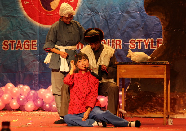 经过为期两个多月的初赛、复赛的淘汰性选拔,最终有七个班级入围此次决赛。《三毛流浪记》再现了旧上海时代三毛善良勇敢的高贵品质;《荆轲刺秦王》穿越时光隧道,演绎刀光剑影;《海的女儿》诠释经典爱情,暖人心扉;日语短剧《一休》勾勒出机灵调皮、聪慧幽默的一休形象;富含法国风情的经典剧目《项链》再现欧洲文化特色,让人耳目一新;《白毛女》中喜儿与大春的团聚将比赛推向高潮,耐人寻味。比赛结束后,曹进经理对此次比赛进行了精彩点评,并鼓励演员们挖掘表演潜力,全面发展。