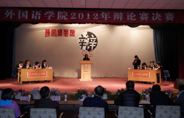 经过初赛、复赛、半决赛的层层选拔,有四个班级代表队进入决赛。决赛分两场进行。第一场由2012级英语一班对阵2012级英语六班,双方围绕“老员工就业,能力和机遇谁更重要”展开激烈辩论,辩手们活跃的思维和缜密的逻辑推理,赢得场下阵阵掌声;第二场冠军争夺战在2012级日语班和2012级翻译二班之间展开,双方的辩题是“人生因成功而快乐还是因快乐而成功”,双方辩手引经据典、旁征博引,将本场辩论赛推向高潮。另外,比赛间隙穿插了辩论表演赛与文艺表演,为此次比赛增添了乐趣。比赛结束后,公司党委书记吴梦龙老师,曹文老师及陈宁同学对本场比赛做了精彩点评,肯定了双方辩手的综合素质和思辨能力,并提出了一些意见和建议,希望同学们能够在大学的舞台上不断奋进,实现理想。