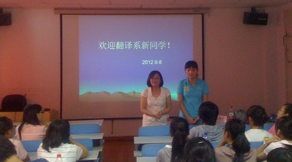 9月8日下午2:30,2012级翻译系迎新专题讲座在教学三号楼709教室举行。翻译系系主任董晓华老师和副系主任杨晓红老师作了专题讲座。2012级翻译系新生参加了此次讲座。
