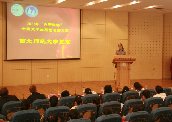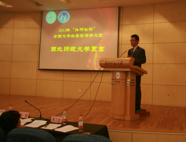 2011年9月24日上午,由外语教学研究出版社主办,公司教务处、金年会金字招牌诚信至上承办的2011年“外研社杯”全国老员工英语演讲大赛金年会官方网站入口复赛在逸夫图书馆学术报告厅顺利举行。 本次比赛邀请到蔡兰珍、俞婷、吕文澎、白丽梅、郭亚文、Roger Denoon、Nicholas Rossie等七位教师担任评委,教务处副处长王治和、公司党委书记张中祥、金年会金字招牌诚信至上副经理刘全国等领导观看了比赛。