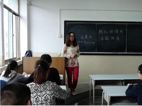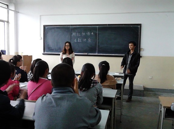 2013年9月5日下午3:00,阿拉伯语系2013级本科生迎新专题讲座在3号教学楼举行。阿拉伯语系赵慧杰老师和马志远老师担任主讲,2013级阿拉伯语专业全体本科生聆听了讲座。