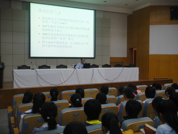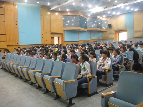 2013年9月8日早9:00,英语系2013级本科生座谈会在学术会堂举行。英语系系主任宁振业副教授、2013级英语专业本科生班主任、以及2013级英语专业全体本科生参加了座谈会。座谈会由宁振业副教授主持。