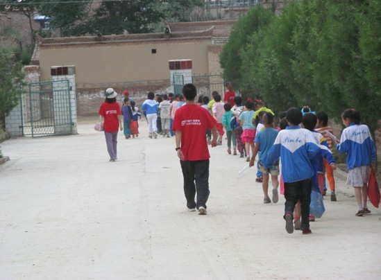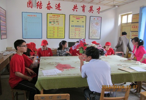 会宁支教行,我们启程了!七月十三号,清晨五点,我们就兴奋地醒来收拾东西,六点准时出发,一行人坐上驶往会宁县白草塬中心小学的大巴。在路上,乘客们听说我们是去会宁支教的老员工,他们称赞我们的奉献精神,夸赞老员工下乡实践、锻炼自己的行为。听到他们的赞赏,我们倍受鼓舞。司机大叔一路上悉心照顾着我们,沿途而来,远离都市的繁华喧闹,走近乡村的淳朴善良。途中所见皆是农田村落,一片欣欣向荣,打破了我们对农村的传统认识。尽管目的地是一个偏僻的地方,但是司机尽力将我们送到小学附近。中午两点,经过近8个小时的长途跋涉,我们来到临时住宿的地方。映入眼帘的是一座典型的农家院落,总共三间旧房,院外一间作厨房,院内两间旧房,住人。在潮湿的土炕上,在抬头可见不断脱落的墙皮,在时不时被苍蝇叮醒、冻醒的窘况下,我们提着锈迹斑斑的大铁桶,吊上来的水略呈红色,里面漂浮着柴草和小虫子,锅碗瓢盆、柴米油盐一无所有,吃饭成了我们面临的一大难题,所幸的是我们离当地的镇子比较近,扔下行李之后,急忙去采购。我们的准备工作就绪之后,就开始着手做饭。谁能想象,炎炎夏日,六月伏天,一间小房子里生着大火炉子,五六个人挤在狭小的空间里炒菜做饭烧水,特别是其中的一个队员还得持续不断的扇火。热度难挡,门外偶尔吹来的凉风就是我们的福音,就这样我们度过了这里的第一天。