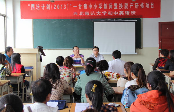2013年9月17日上午,国培计划(2013)甘肃中小学教师置换脱产研修项目初中英语研修班班在3号教学楼603教室开班,经理曹进教授、副经理刘全国教授及来自全省各地的48名初中英语教师参加了开班仪式。