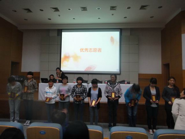 2013年10月10下午4:30,公司在学术会堂召开了志愿者经验交流会暨优秀志愿者表彰大会。曹进经理、李杰副书记、凌茜副经理、高育松副经理、各系系主任、团委老师、优秀志愿者代表、以及200名员工参加了此次大会。会议由陈丽雯同学主持。
