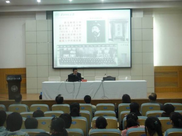 2013年10月10日晚7:00,金年会官方网站入口副董事长丁虎生教授在学术会堂做了题为《西北师大的历史文化品质》的群众路线教育专题讲座。吴梦龙书记、曹进经理、李杰副书记、凌茜副经理、高育松副经理、王建人副经理、公司教工党支部所有党员、以及2013级全体本科生聆听了此次讲座。讲座由吴梦龙书记主持。