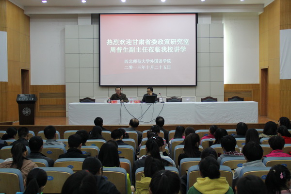 10月25日上午,甘肃省省委政策研究室周普生副主任在学术会堂为公司师生作了题为《全国和甘肃发展与老员工的使命》的报告。本次报告由公司经理曹进教授主持,公司300余名师生聆听了本次报告。