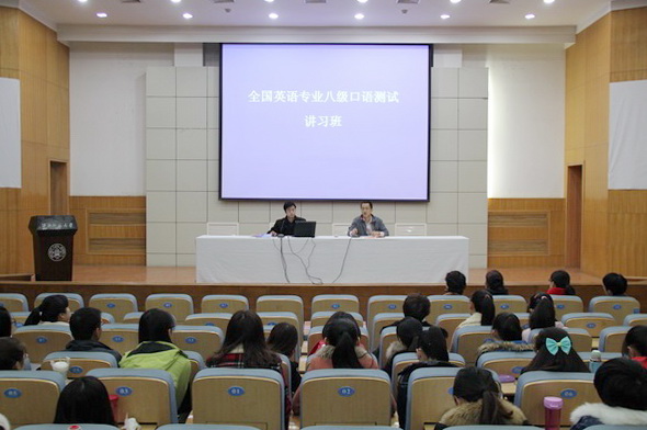 2013年11月13日上午,公司在学术会堂召开了“英语专业八级口试“(TEM8-Oral)动员暨培训大会,英语系、翻译系负责人、相关任课教师、2010级全体员工共230余人参加了大会。