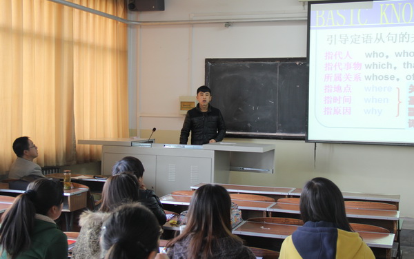 2013年11月15日下午2:30,英语系进行了2014届师范类毕业生教学大赛海选阶段的比赛。海选分5个分赛场,英语系教师徐国柱、周漫、张桂娟、曹文、缪青青应邀担任本次海选的评委老师。