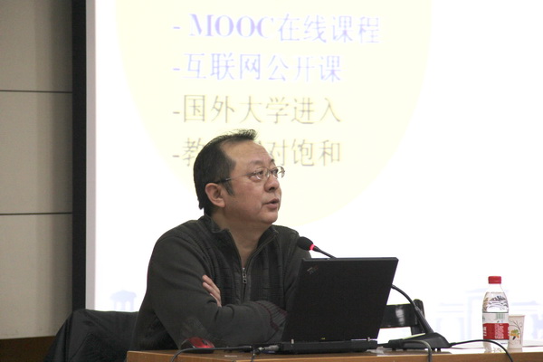 报告会上,曹进教授通过分析当前传统师范大学的转型和2014年高考制度改革,明确指出了英语专业发展面临的困境和严峻的就业形势。在总结外语专业人才培养存在的问题的同时集中探讨了英语类专业创新发展和走出困境需要做出的调整,从主客观两个方面提出了解决问题的对策,并且强调提高竞争力是面对危机与挑战的关键所在。最后,曹经理以“学习成就未来,知识改变命运”为结语,呼吁外语公司的研究生们参与实践活动,在实践中进步,成长为有担当的学术人才。