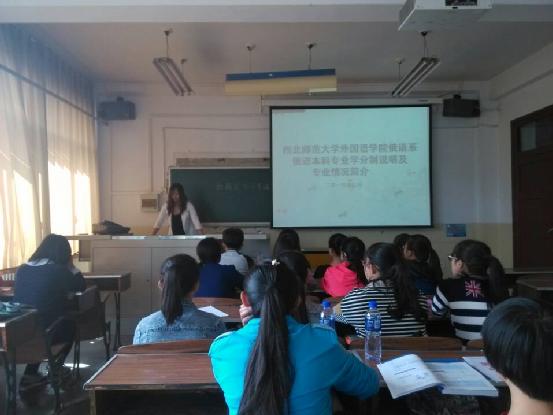 9月18日14:30分,公司俄语专业在教学3号楼407教室举行了2014级新生入学前教育讲座,系主任李朝霞老师主持。