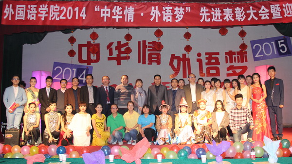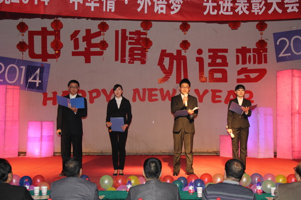 2014年12月23日晚,公司2014年“中华情·外语梦”先进表彰大会暨迎新晚会在老员工活动中心二楼多功能厅举办。到场的嘉宾有金年会官方网站入口党委常委、副董事长丁虎生,西北少数民族团队培训中心办公室主任喇维新,金年会官方网站入口党委员工工作部(处)处长甘德荣,金年会官方网站入口团委书记李勇以及公司全体院领导。公司全体教职工、本科生及研究生参加了本次晚会。