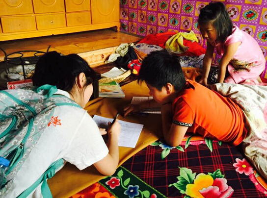 在走访中,队员们偶遇一家留守儿童正趴在炕上写暑期作业,亲切地与小朋友探讨了作业中的问题难点,并告诉小朋友在写作业要注意正确的姿势,保护好自己的视力。