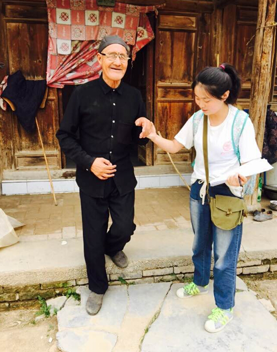 队员们与老爷爷亲切交谈,爷爷用着当地话表达着自己生活的困难,队员搀扶着爷爷,用心倾听着爷爷的困难,并记录下了相关的信息。希望可以想到方法帮助老人以后的生活。