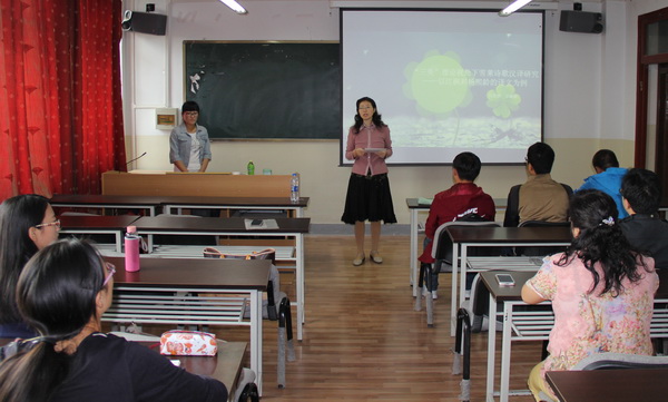 诗歌饱含丰富的想象和感情,是语言艺术精粹的凝练,其中语言艺术技巧的运用丰富多样。美国诗人弗罗斯特云:“诗者,翻译所失也”(Poetry is what gets lost in translation.),表达了诗歌翻译的挑战性和某种程度的不可译性。我国翻译界普遍认为诗歌是文学翻译中难度最大的一种体裁,英诗汉译向来是翻译研究中的一个难点。实践证明:诗歌是可以翻译的。本次研讨会激发了广大师生对诗歌翻译的兴趣,也为公司翻译方向的研究生拓宽了研究思路,提供了新的研究模式。