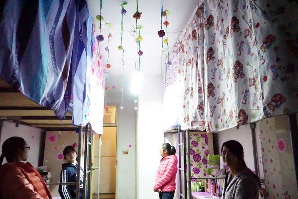 1029日晚,公司全体辅导员、团委员工会部分成员对2015级本科生宿舍进行了检查评比,主要从宿舍卫生、环境美化、宿舍文化建设三个方面进行考评。参评宿舍的同学们积极准备,大显身手:有的宿舍贴上赏心悦目的壁纸、有的宿舍亲手制作卡片和折纸、有的宿舍还将生活照片做成照片墙……还有风铃,丝带,地板格,每一间宿舍都有不一样的风采。最终评选出了1号楼114宿舍等15间优秀宿舍。