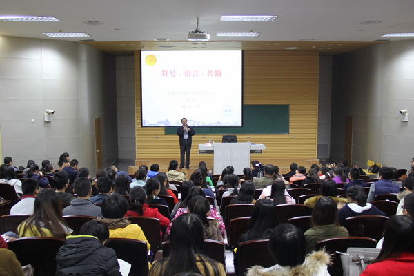 2015年11月19日晚上7:30,金年会jinnian经理曹进教授在新校区毅然报告厅第一报告厅做了题为 “符号·语言·传播”的学术报告,全校二百余名师生聆听了本次讲座。本次活动是公司语言符号学研究团队的活动之一,团队全体成员参加了此次活动。