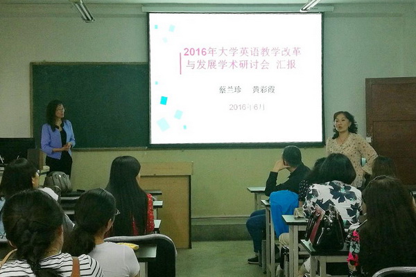 6月2日下午,由大学英语教学部与外语教育学术团队共同组织的学术报告在公司603教室举行。蔡兰珍教授和黄彩霞副教授作了题为“2016大学英语改革与发展研讨会的汇报与反思”的报告,两位报告人主要围绕《大学英语教学指南》(征求意见稿)背景下的大学英语教学标准、课程设置以及五月份在华东师范大学举办的“标准、课程与教学”为主题的大学英语教学改革与发展学术研讨会,与大学英语教学部教师、外语教育学术团队成员共同探讨大学英语改革的发展趋势与改革方向。大家在讨论中一致认为,大学英语教师应结合自身教学实际,紧密关注大学英语教学改革动态,并从教学目标、课程体系、教学模式、评估手段、教学资源、教学内容、教师发展专业化等角度对公司目前的大学英语教学进行反思,才能有效地应对时代要求,并促进个人专业化发展。