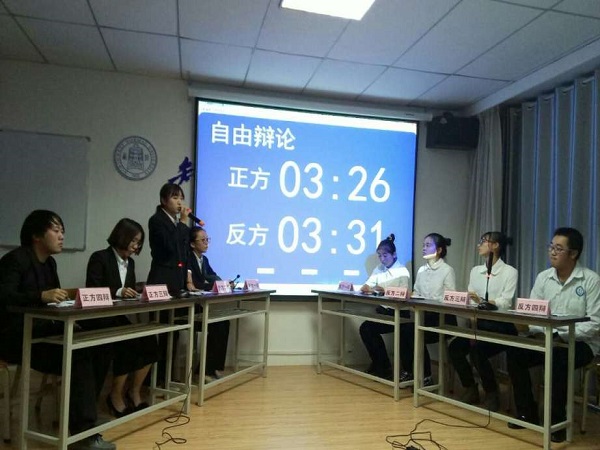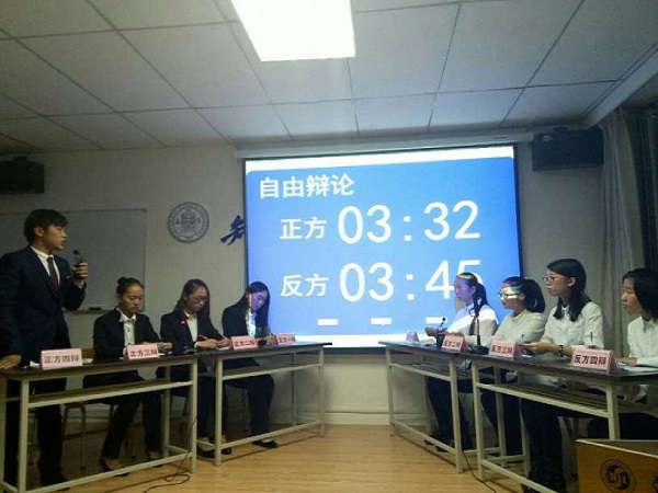 经历了将近一个月初赛,复赛,半决赛的层层选拔。四个班级代表队脱颖而出,入围决赛。首场排位赛由2016级翻译二班对阵2016级英语五班,2016级俄语班对阵2016级日语班。正反双方分别围绕“拒绝毒品,教育与惩治哪个为先”以及“素质教育应不应该废除考试”展开了激烈辩论,双方辩手思维缜密,言辞锋利,令在场观众赞不绝口。第二轮期待已久的冠亚军之争在2016级翻译二班和2016级日语班之间拉开帷幕。双方辩手就“高中毕业生出国留学,是利大于弊还是弊大于利”展开了一场论战。辩手们逻辑清晰,引经据典使得比赛高潮迭起。
