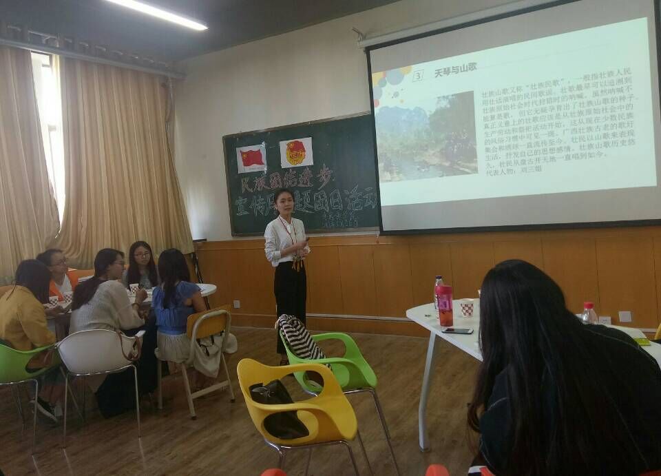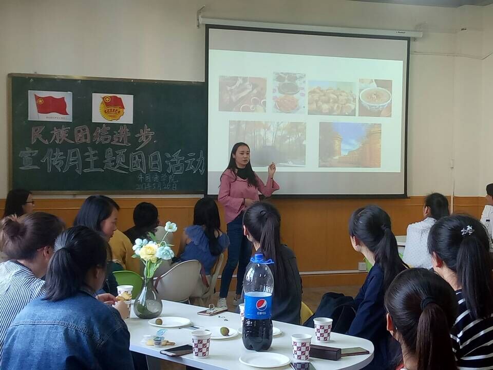 首先马老师给大家做了民族形势专题的报告,介绍了国家为保障各少数民族权益而制定的一系列政策和战略,同时,希望我们尊重各民族风俗习惯,以平常的心态去了解各民族文化,并与少数民族同学保持正常的交往关系,让我们有一个和谐、多文化的校园环境。之后蒙古族、东乡族、彝族、回族、维吾尔族、裕固族、土族、壮族等民族的同学们用歌唱、ppt等形式向大家展示了本民族风情并朗诵了优秀主题征文片段,呼吁大家积极了解各民族文化,使民族交流更和谐,民族融合更充分。同学们在对题为“对少数民族的刻板印象”的话题进行讨论并发表各自意见后,观看了2015年金年会金字招牌诚信至上迎新晚会“民族大联欢”部分与电影《乌鲁木齐的天空》。最后柴书记总结道,我们要心中有爱,让这爱充满世界。不同民族之间也要做到四个认同: 认同伟大祖国,认同中华民族大家庭,认同中华文化,认同中国社会主义道路。