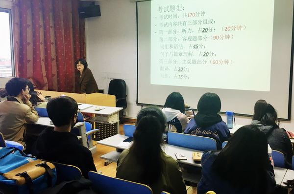 2018年4月14日下午4点30分,阿拉伯语专业在教学3号楼709多媒体教室举办了本学年度阿语专业四级考试动员会。本次活动主要由专业教师马志远和马媛媛主讲,围绕阿拉伯语专业四级考试的考试纪律及重要性、考试时间及组织、考试内容和大纲及要求等内容进行了详细说明,并向大家提出相应的迎考和复习策略。最后两位老师鼓励大家积极备考,争取在本次考试中取得更加优异的成绩。