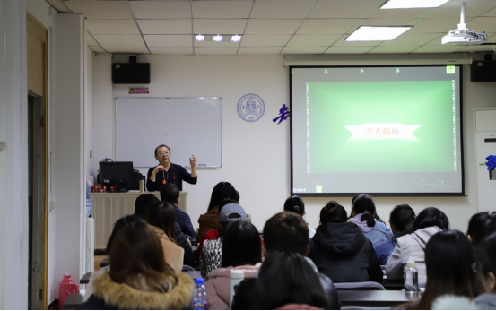 首先,曹进经理给同学们讲述了如何制作简历及求职中需注意的问题。在详细讲解了简历的封面制作、装订以及遣词用句的准确性后,曹经理结合往届毕业生们在求职时容易犯的错误,教授了求职时的技巧,希望帮助大家早日找到理想的工作。