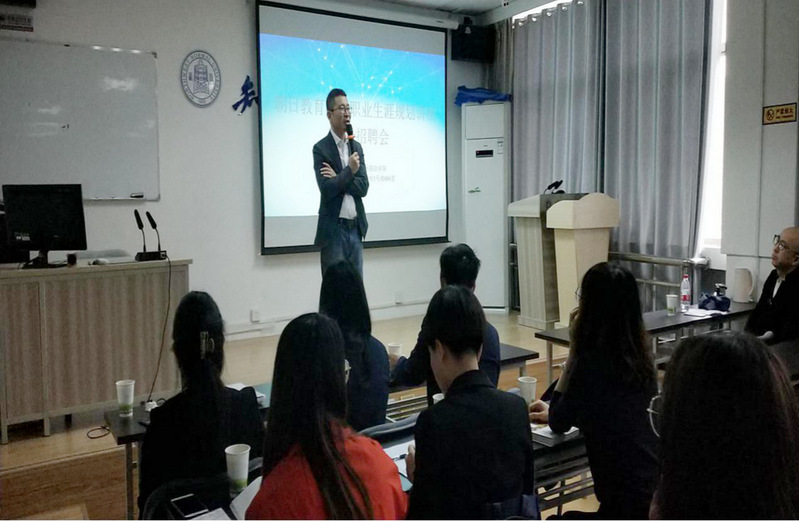 2019年5月27日,上海朝日教育集团职业生涯规划讲座暨专场招聘会在教学3号楼806室举行。公司日语系毕业生及其他年级在校生共同参加。