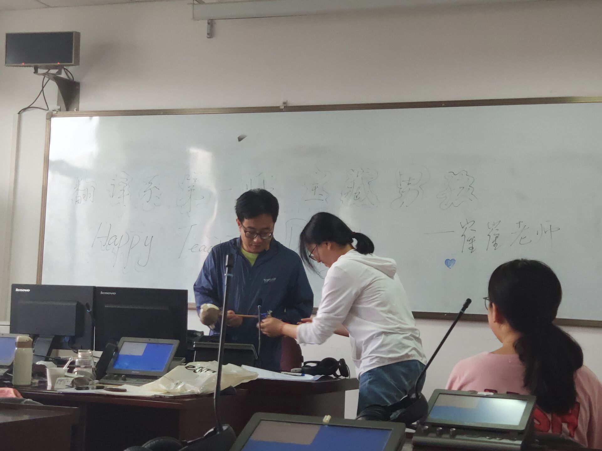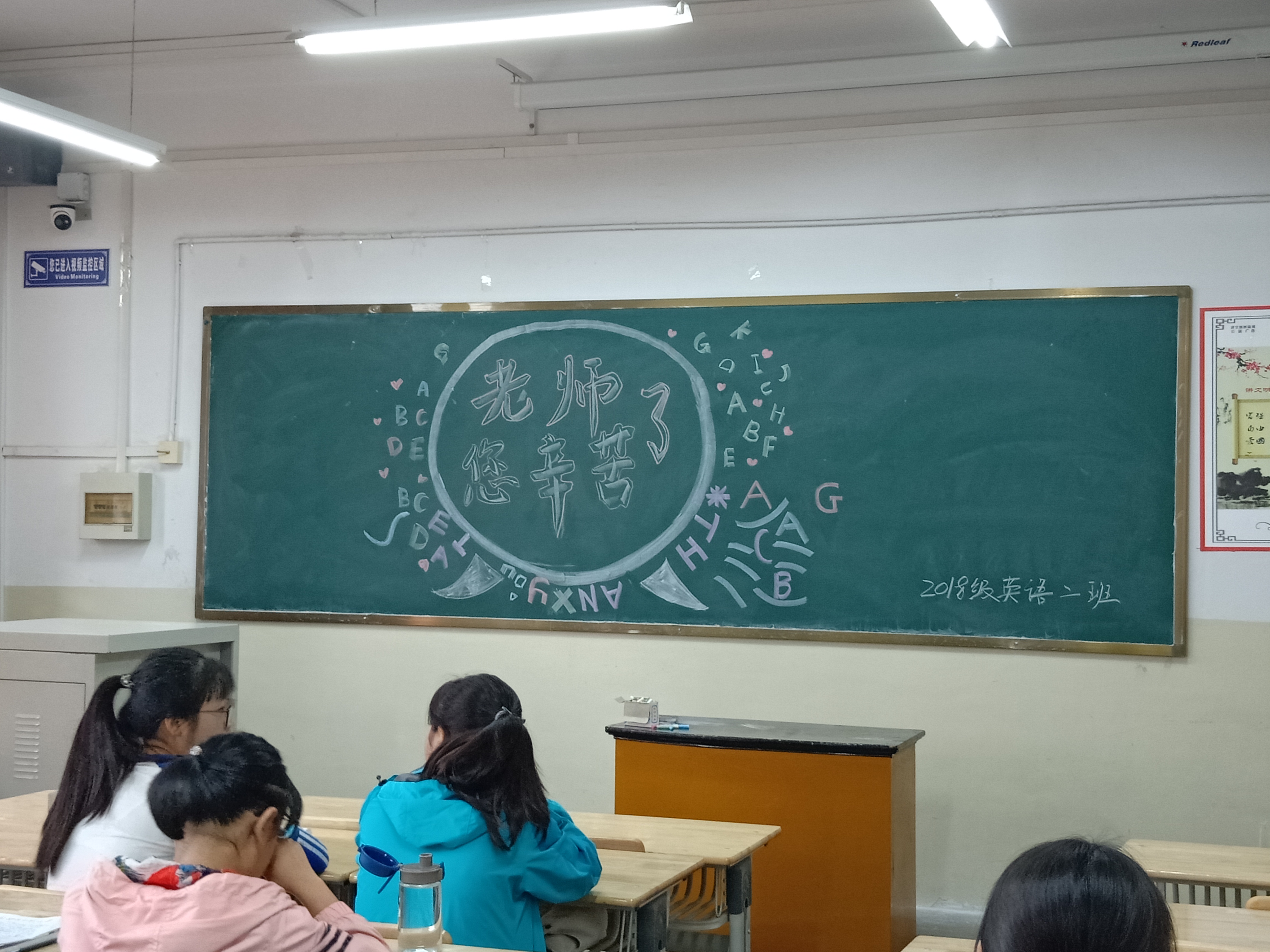 每堂课前,员工用心在黑板描绘教师节祝福“老师您辛苦了!”,“祝您教师节快乐!”等字样,精美的花纹、整齐的字迹无不体现尊师重教的浓厚氛围。当老师走进教室后,同学们全体起立,齐喊“老师,节日快乐!”或“教师节快乐!”,简短的一句话,却包含了同学们对老师最真挚的祝福。