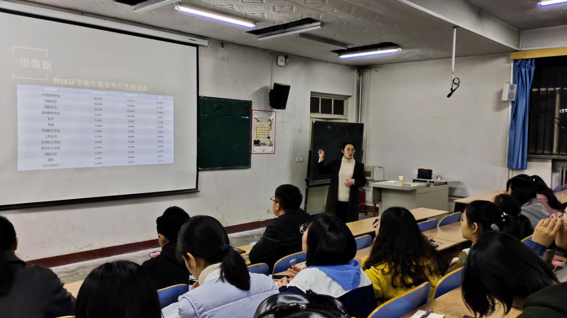 随着市场经济供给侧结构性改革步伐加快,就业优先政策归位于宏观政策层面。处暑时节,公司招聘求职季大幕缓缓拉开,各类企事业单位以每天4场的频次更迭,至深秋2019年秋季双选会,用人需求即将达到一个新的高度。为帮助2020届毕业生抢抓就业市场红利,应对求职过程中观念桎梏、行动力缺乏等问题,有效衔接各类用人单位需求。11月6日晚七点半,公司在电阶201室举行2020届毕业生就业动员大会,本次活动由人才招聘处雷春芳老师主讲,辅导员刘心月老师及2020届本科、硕士毕业生150余人参加。