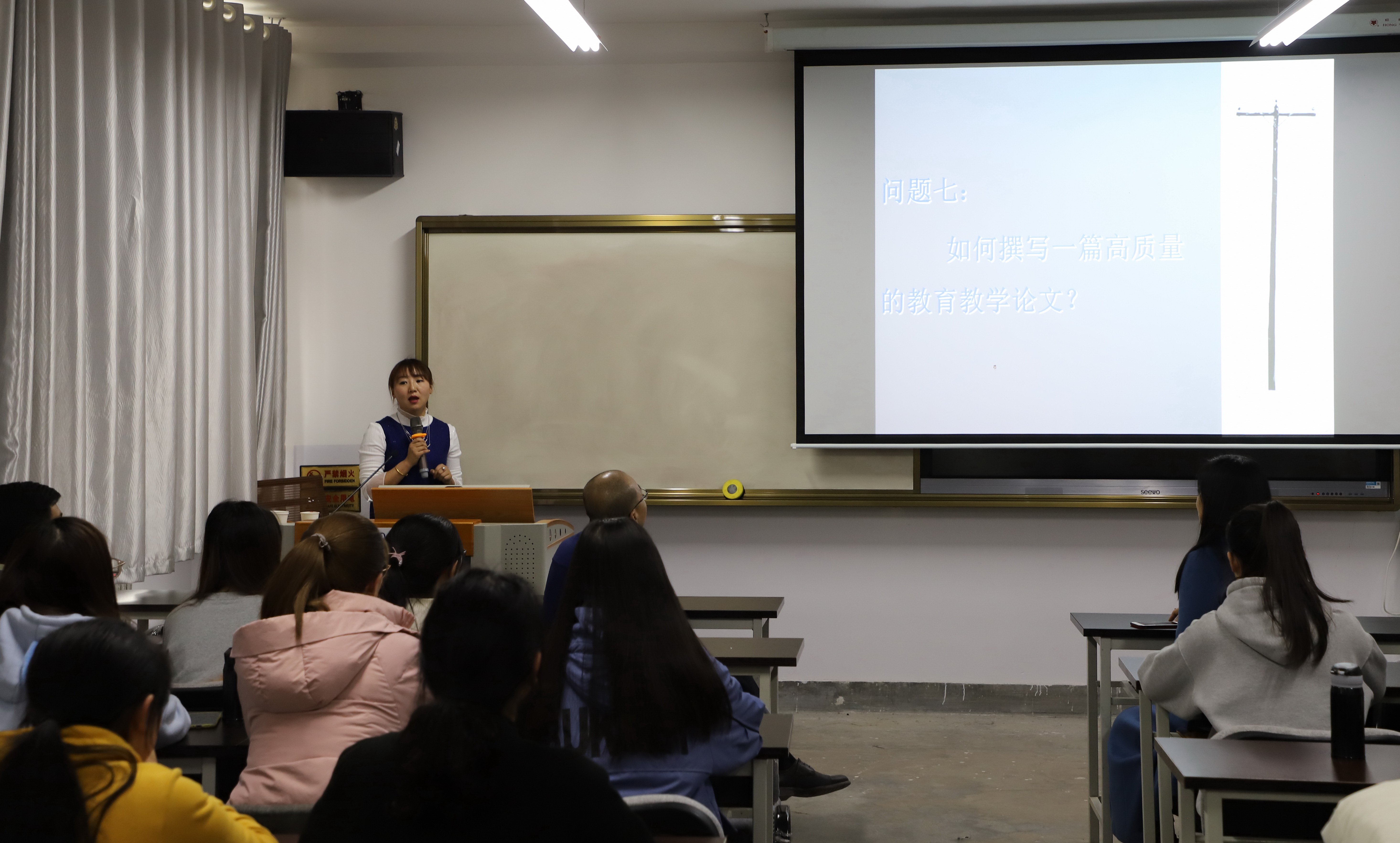 2019年11月19日下午,应公司邀请,甘肃省教科院教师发展研究所所长李丽娟老师在教学3号楼603室做了题为“且行且思,成就未来好教师”的学术讲座,英语专业本科生聆听了此次讲座。