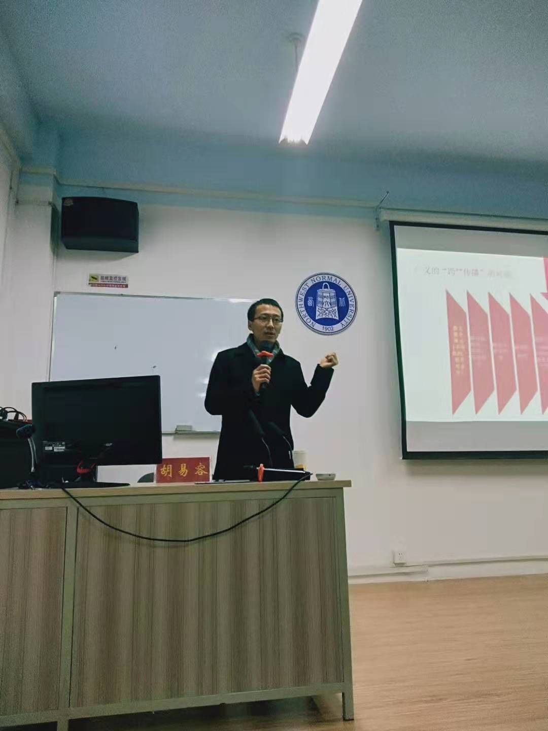 首先,胡老师从广义的“跨**传播”的可能性角度出发,提出了关于传播的两个推论:1.在遮蔽作为常态的理论语境下谈论包括跨文化传播”在内的任何传播;2.传播的本质是克服某种障碍-“去蔽”。接着,胡教授指出在传播学中看待“去蔽”有两种思路:物理的阻隔和理解的阻隔,前者是对物理时空上障碍的克服(信号传媒学);后者是对人及其构成的文化社群障碍的克服(符号交流学)。其次,胡老师对亨廷顿的著作《文明的冲突》悖论作了进一步的解释,并提出了两个有趣的追问,在场同学就这两个问题进行了深入的思考和讨论。随后,胡老师着重讨论了意义世界与自在世界的交界面。在卡西尔和赵毅衡的哲学符号学论述上,胡老师提出了自己的观点通:哲学符号学的起点是阐明意义世界的起点和边界,符号学既是“感知符号学”,也是“认知符号学”。讲座之后,胡老师还悉心地回答了老师和研究生们提出的相关问题。