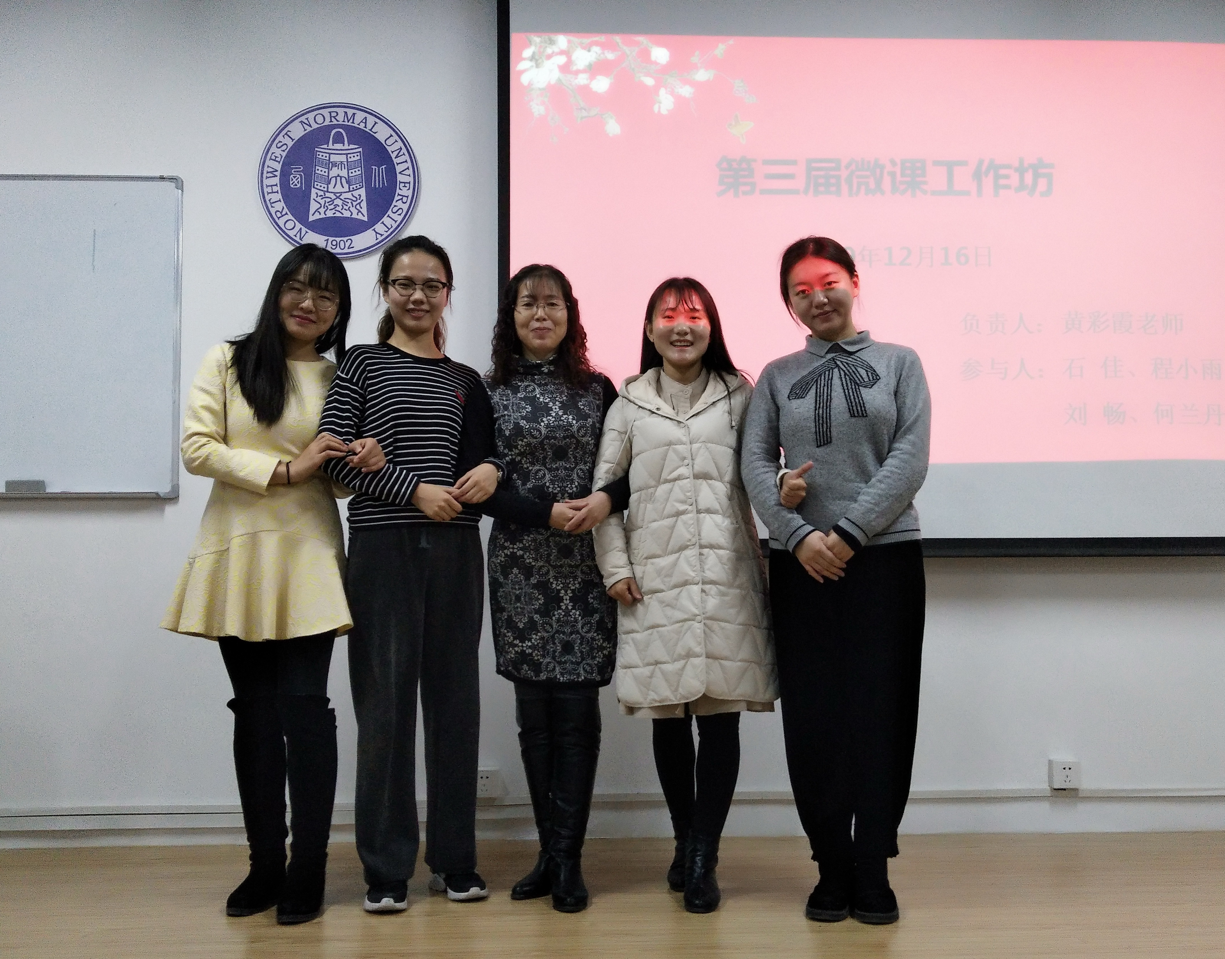 2019年12月16日下午4:30,公司在教学3号楼806教室开展了第三届微课工作坊活动。微课工作坊团队由黄彩霞老师及2018级研究生石佳、程小雨、刘畅、何兰丹四位同学组成。2019级全体教育硕士参加了此次活动。