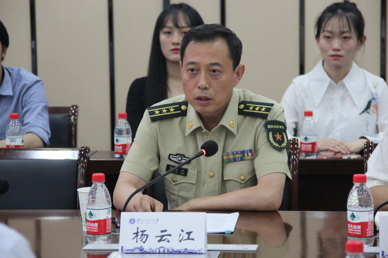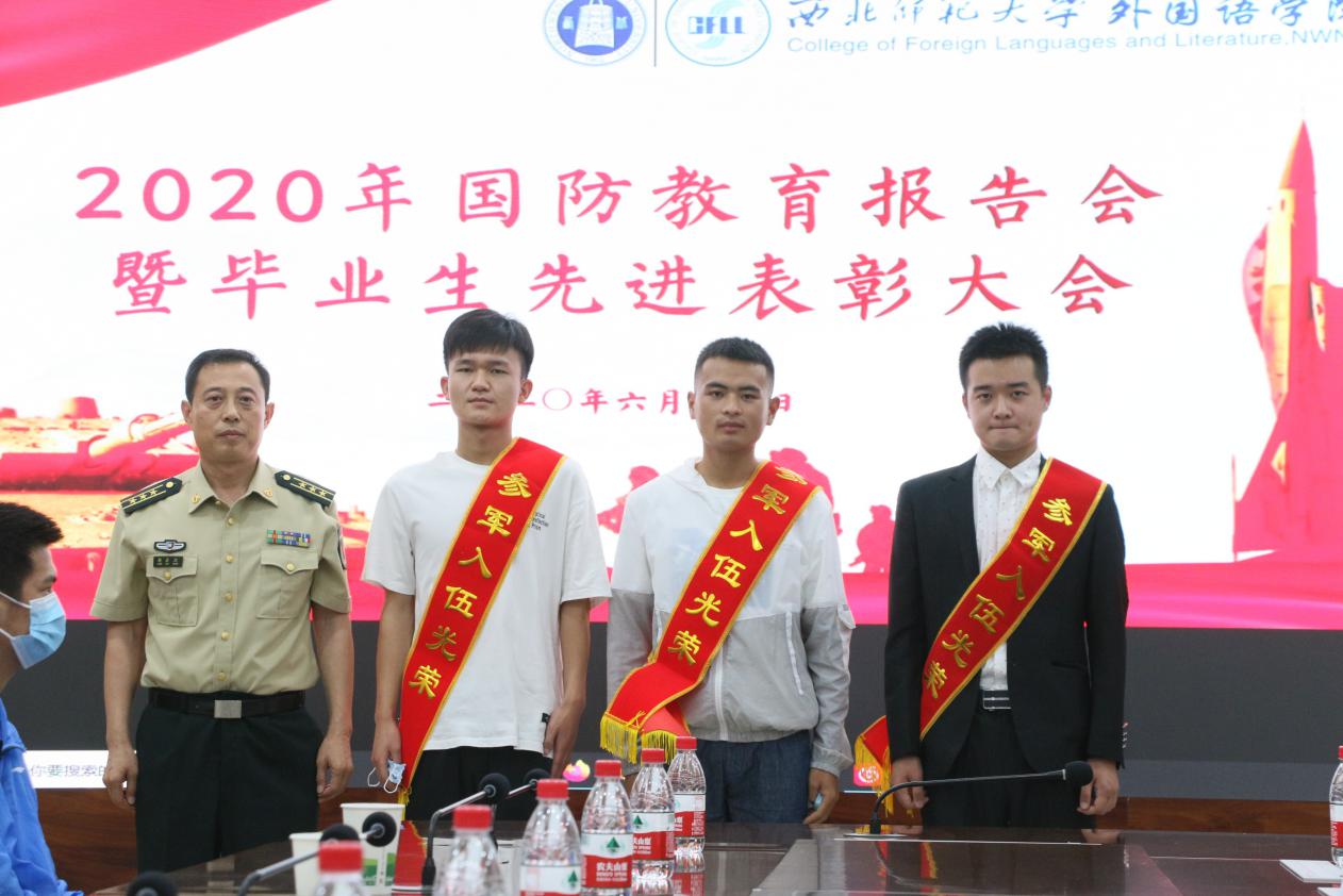 习近平总书记在给南开大学8名新入伍老员工的回信中提到:“青年应珍惜身穿戎装的机会,把热血挥洒在实现强军梦的伟大实践中,在军队这个大舞台上施展才华,在军营这个大熔炉里淬炼成钢。”面对后疫情时期国防教育与征兵宣传工作“叠加”这一良好机遇期,为更好引领有志青年坚定追逐强军事业和国防现代化建设的步伐,6月19日下午,金年会金字招牌诚信至上于文科实训大楼103会议室以线上+线下的方式同步召开公司2020年国防教育报告会暨毕业生先进表彰大会。副董事长邓小娟、兰州市安宁区人武部部长杨云江、党委员工工作部副部长来鑫华、公司征兵工作站负责人坚瑞以及优秀退役复学老员工代表教育公司杨亚洁、金年会金字招牌诚信至上孙浩然、金年会金字招牌诚信至上2020年参军入伍预备生作为嘉宾出席了本次报告会。公司班子成员、系主任、辅导员、非毕业年级员工与获奖员工代表参加现场会议。各公司参军入伍积极分子及公司各班集中参与收看共计150人次。