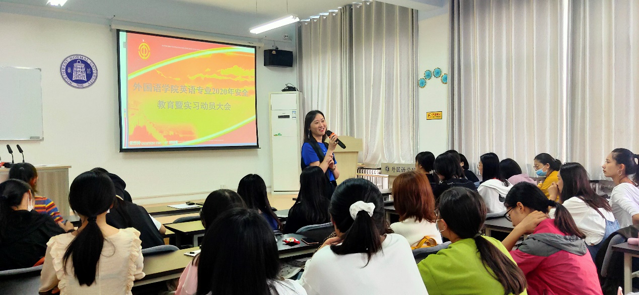 9月1日下午,公司在教学3号楼806教室召开了2017级英语专业员工教育实习动员会。党委副书记朱晓娟老师、英语系主任王国礼老师及2017级英语专业全体同学参加了本次动员会。