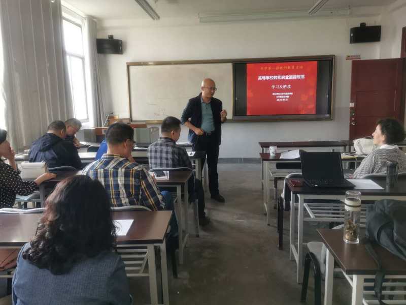 9月3日下午,大学英语教学部在教学三号楼603教室开展了“立师德、铸师魂开学第一讲教师教育活动”,本部全体教师参加了学习研讨。