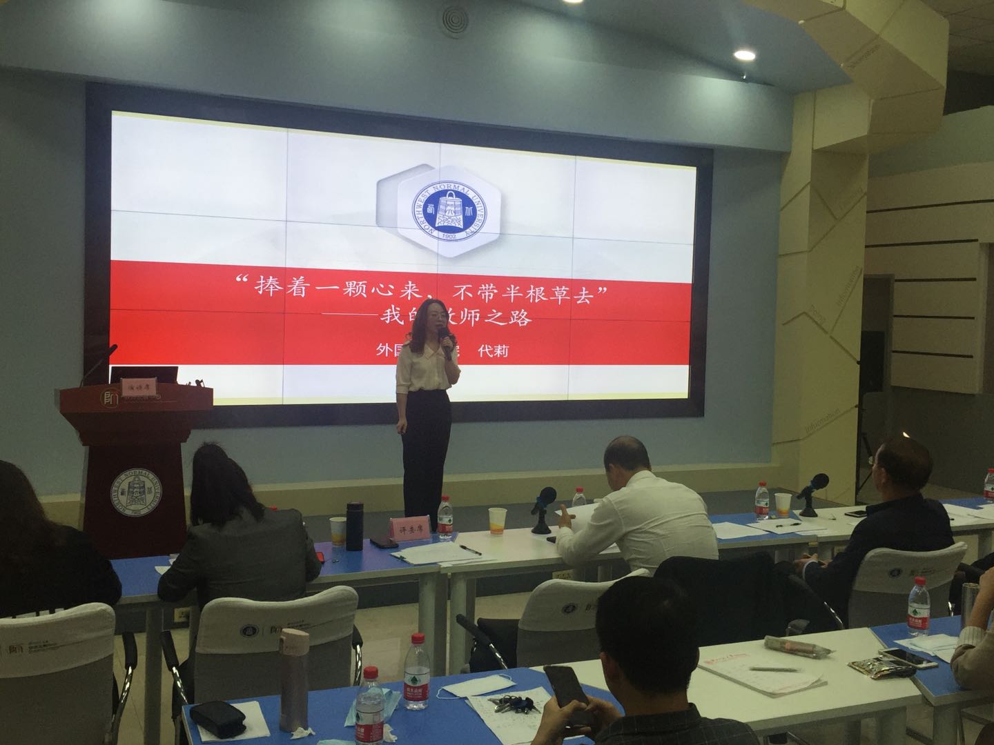 代莉老师以自身的从教经历和成长为主线,以公司的教育发展为背景,讲述了指导“红豆草”社会实践团、疫情期间创新教学以及“习语‘典’读——习近平用典双语解读”微课主讲等故事,展示了爱教乐教、铸魂塑形的良好形象。她的演讲主题鲜明,事例鲜活,生动感人,赢得现场观众的一致好评。