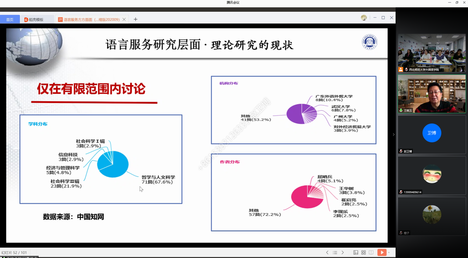 2020年9月24日下午天津外国语大学博士生导师王铭玉教授应公司邀请,以“语言服务的方方面面”为题,做了精彩的在线学术讲座。公司副经理俞婷、李莉以及其他50余名师生在606教室聆听讲座,并与王教授进行在线问答互动。近百名师生通过腾讯会议、B站直播在线参加讲座。