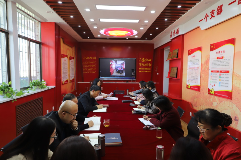 会议采取“线上+线下”的方式进行,各支部书记、系部中心主任副主任在线上参会,党委理论学习中心组成员、教工第三党支部党员在党员活动室参会。