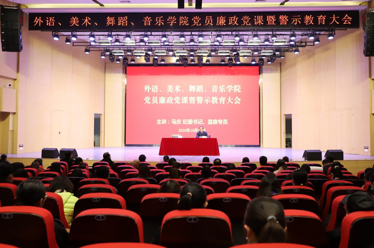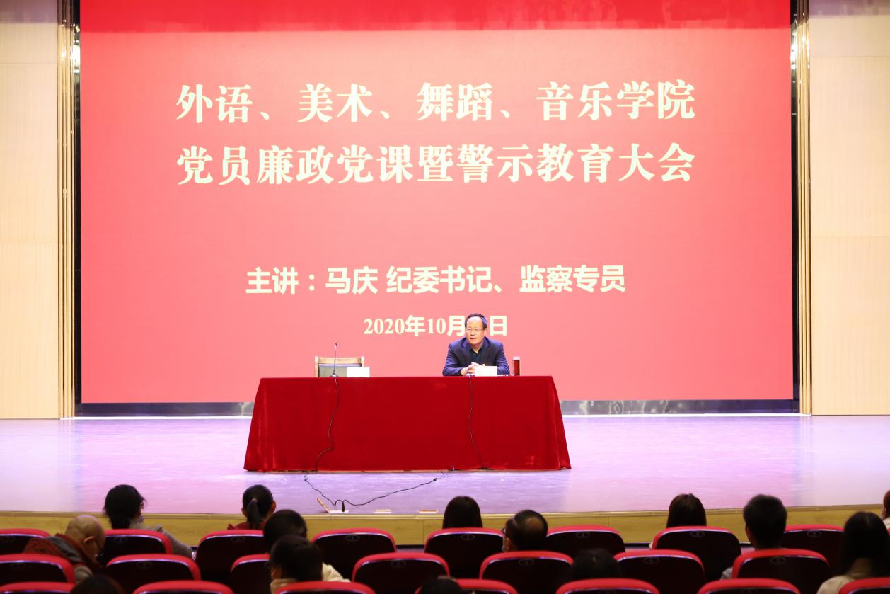 10月27日,金年会金字招牌诚信至上、美术公司、舞蹈公司、音乐公司在音乐厅联合举行党风廉政教育宣传月教育活动,邀请纪委书记、监察专员马庆为全体教工讲授《强化理想信念 严守纪律底线》廉政党课报告,报告由公司党委负责人主持。