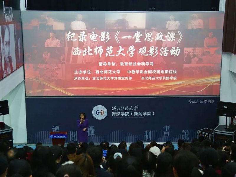 2020年10月30日14:30,由教育部社会科学司指导,中教华影全国校园电影院线拍摄制作的纪录电影《一堂思政课》观影活动开幕仪式在西北师大举行,公司党委书记王景、辅导员丁雪琴老师带领50余名员工代表参加此次活动并观看影片。