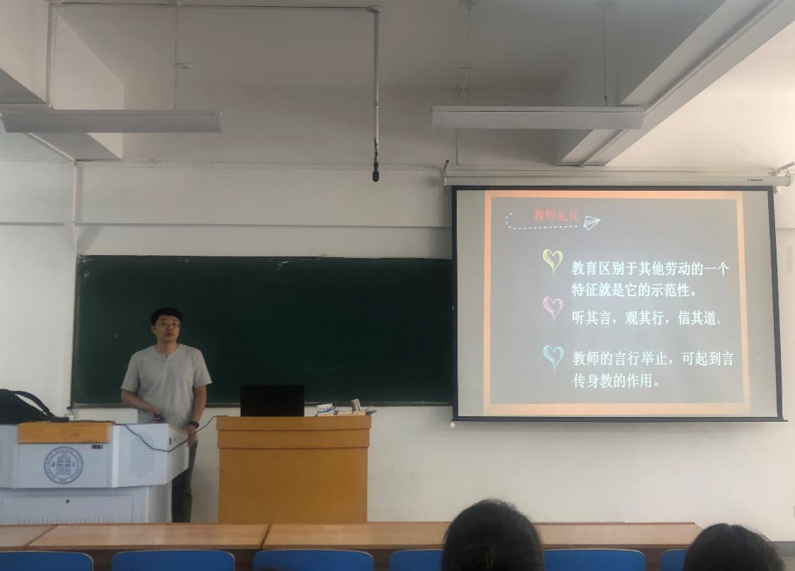 王燕飞老师则从教师职业礼仪、如何做一名受欢迎的好老师、如何备课、如何组织课堂教学等方面开展了培训。他指出,教师区别于其他劳动者的一个特征就在于其示范性,要“听其言、观其行、信其道”,教师的言行举止起到言传身教的作用;要学会和员工沟通,了解员工的想法,掌握中员工的心理特征,平时管理中宽严有度;讲课风趣幽默,思路清晰、穿着有品、举止大方、知识渊博的教师最后员工欢迎;就备课而言,要做到备员工、备教材、备教法,结合自己的特长与个性,讲好每一节课。王老师事例生动、语言幽默、讲解全面,给员工很多启发。