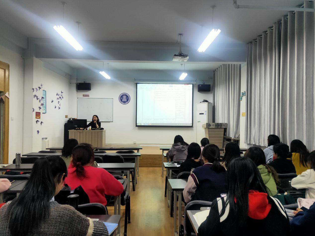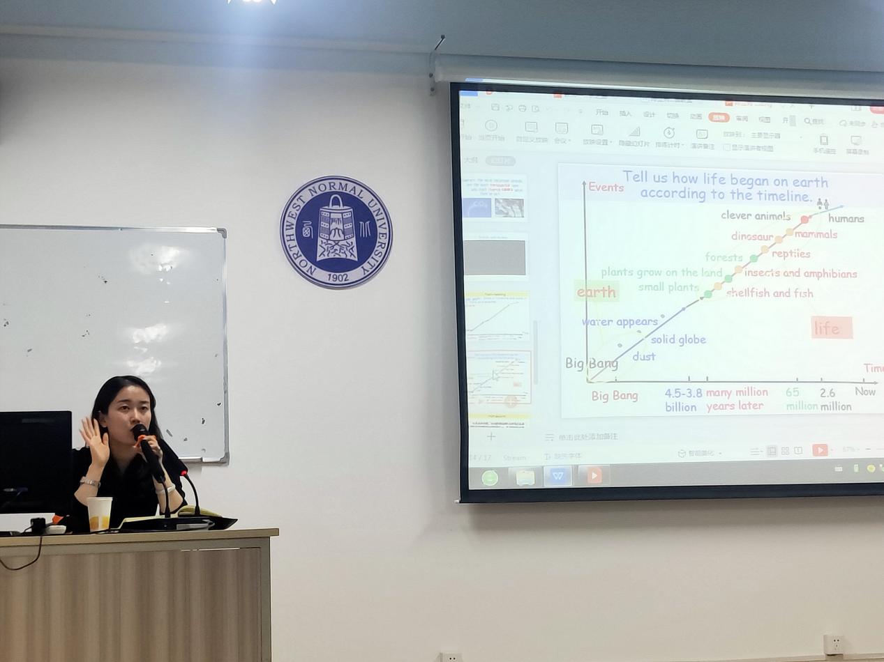 陈老师作为外院的优秀毕业生,2018年研究生毕业后在西北师大附中工作至今,有着丰富的中学教学经验。在分享会上,陈老师主要围绕三个方面展开了分享:自我成长、自我反思和自我鼓励。在自我成长方面,她介绍了自己的教师成长经历,分享了在教学一线工作的教学经验,如教师要“站稳讲台”、“认真备好每一门课”、“边学边教、和员工一起成长”、“积极参加公司的教学比赛、教研平台培训”。陈老师也深深寄语在校的学弟学妹们珍惜员工时光,敢于走出舒适区,在校期间打好自己作为一名英语人的基本功。在自我反思方面,陈老师向大家展示了自己反复打磨后的教案、说课稿和平时教学的PPT课件等。她认为,教师应当树立终生学习的信念,学高为师,身正为范,在教学相长中不断提升自我。在自我鼓励方面,陈老师和大家分享了三个词:态度、效度、温度。教师在教学中要适当地进行自我鼓励,在教学中不断地追求完美、注重细节。