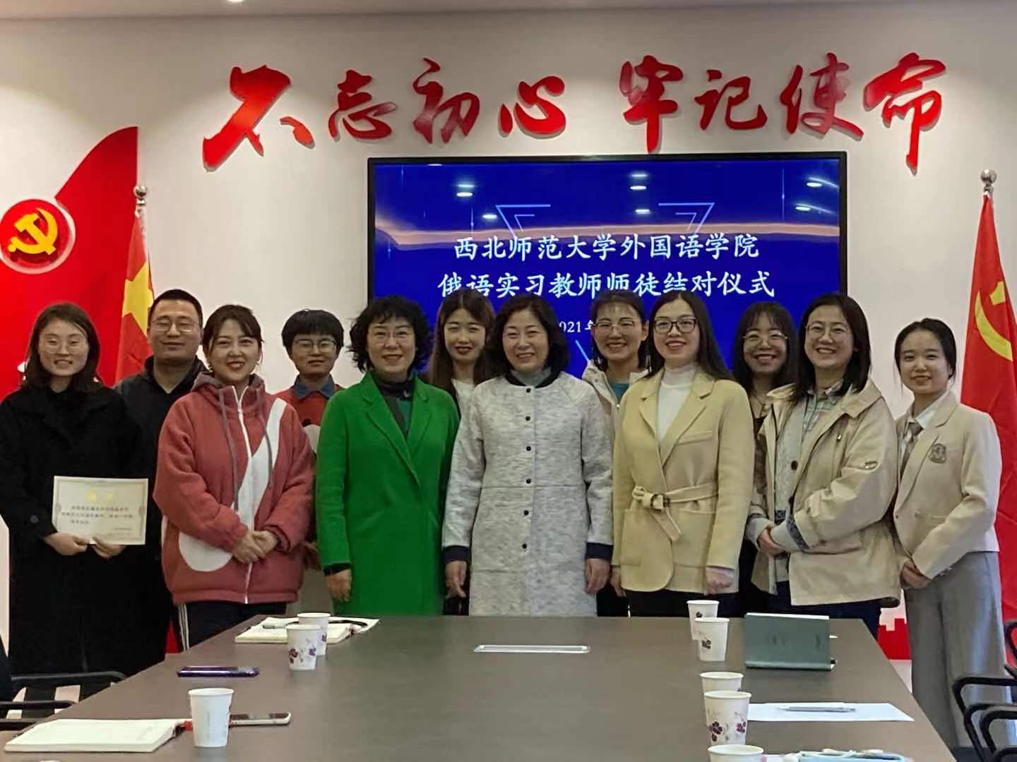 19日下午,在金年会金字招牌诚信至上副经理李莉,俄语系主任陈舒和白阳的带领下,俄语系五名员工赴兰州市外国语公司开展实习活动。兰州外国语公司副董事长刘育红及外教中心主任董晓霞等多位老师对金年会金字招牌诚信至上首批来校进行实习的员工表示热烈欢迎,兰州市外国语公司为俄语系实习员工举行了“师徒结对”仪式。随后,董晓霞老师为五位实习生分配了指导老师,并对实习要求做了相关说明。