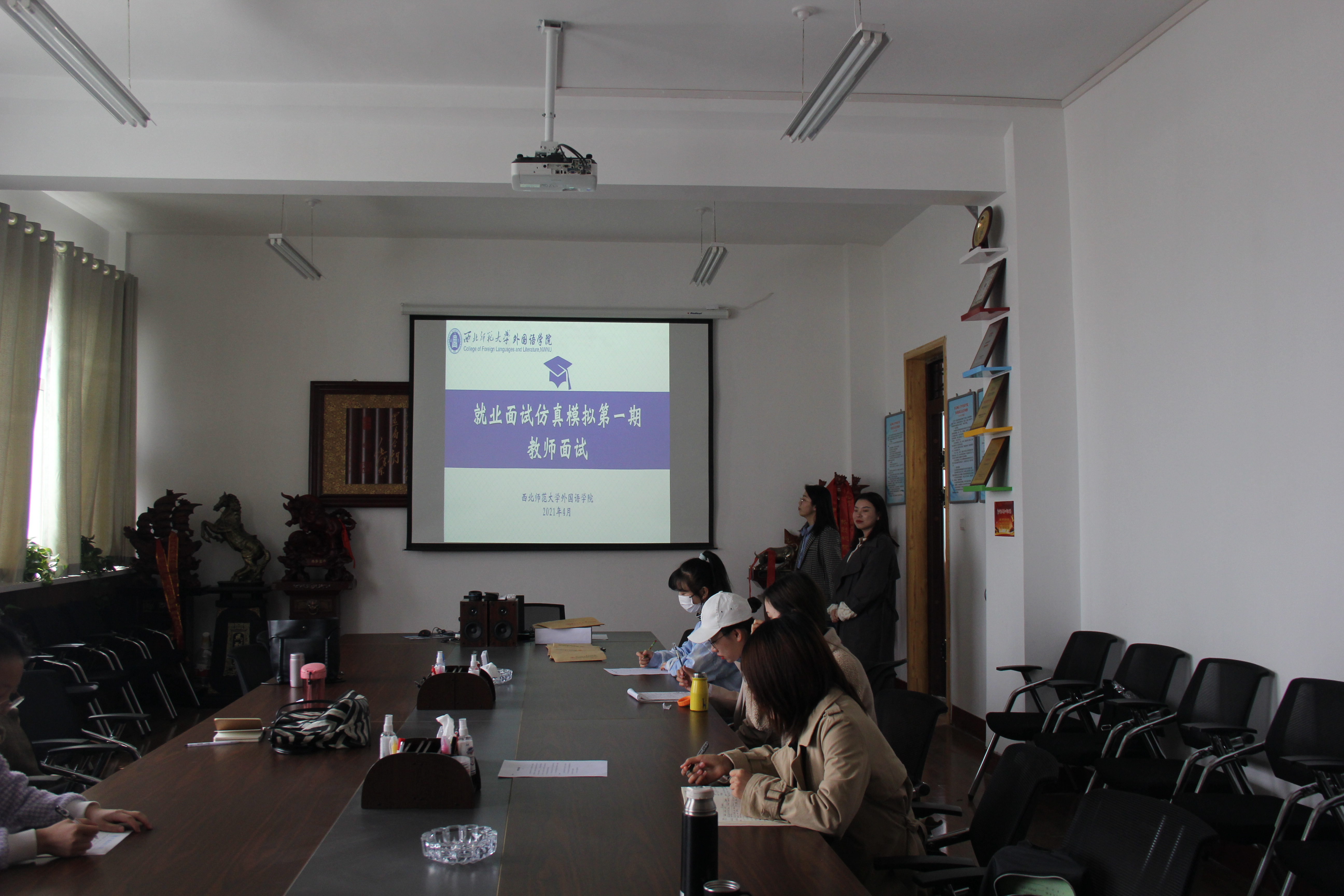 为进一步增强员工就业意识,锻炼就业能力,积累就业经验,2021年4月7日下午3:00,金年会金字招牌诚信至上在教学3号楼806教室举办了“就业面试仿真模拟第一期——教师面试”活动。本次活动由公司教师李红霞、薛小梅、陈倩、党莉莉、董霄朦担任评委。公司研究生和本科生约120余人观摩了本次模拟面试。